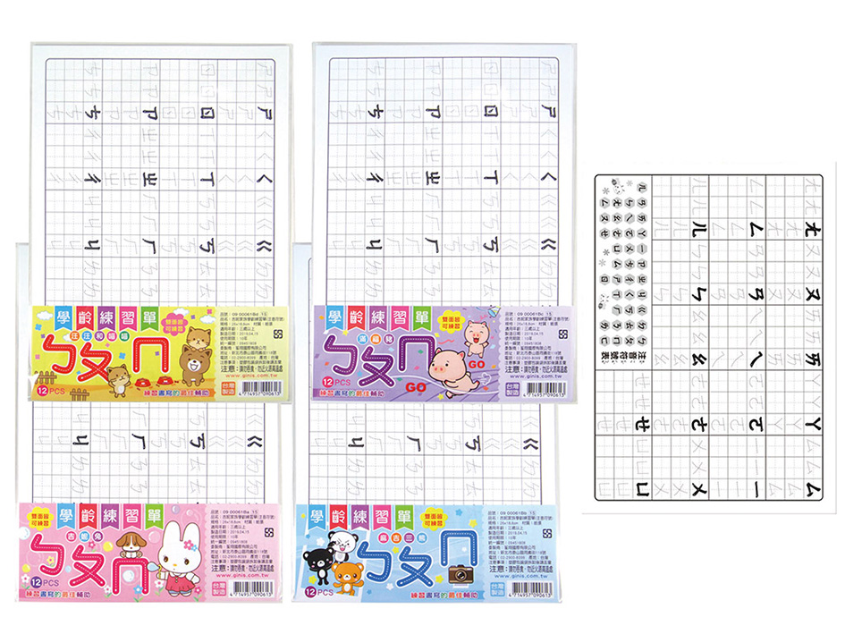 筌翔國際文具禮品-專業設計製作生產行銷批發零售供應商 -- 吉家學齡前注音符號練習單