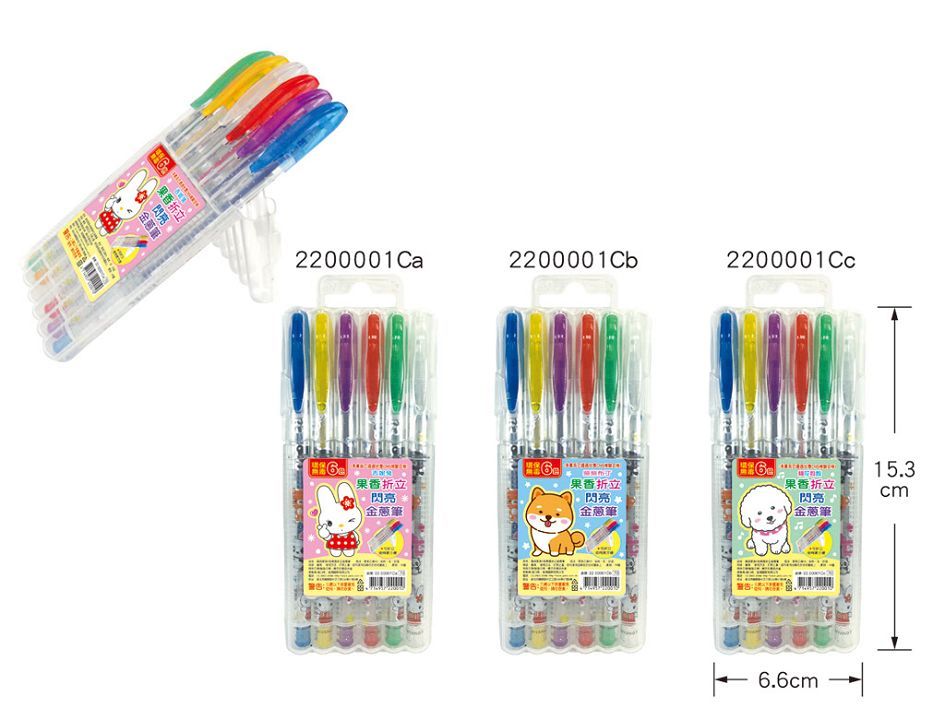 筌翔國際文具禮品-專業設計製作生產行銷批發零售供應商 -- 麻吉六色果香折立閃亮金蔥筆