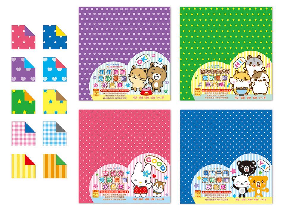 筌翔國際文具禮品-專業設計製作生產行銷批發零售供應商 -- 麻吉亮彩雙面彩色紙50入