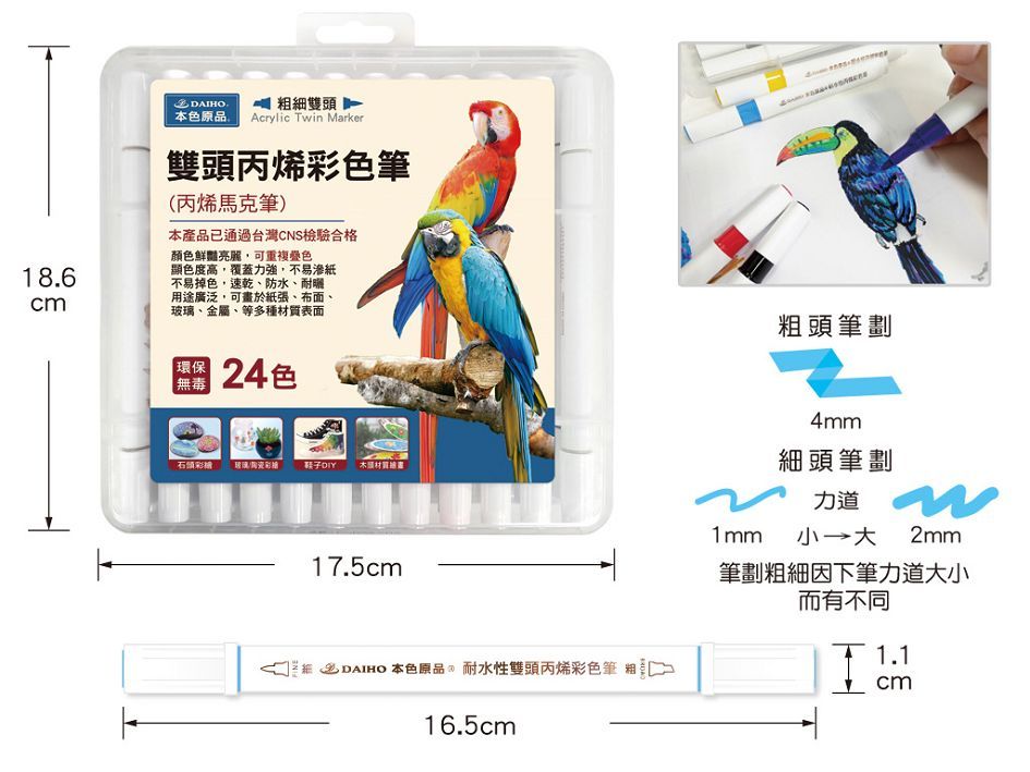 筌翔國際文具禮品-專業設計製作生產行銷批發零售供應商 -- 本色丙烯雙頭彩色筆24色